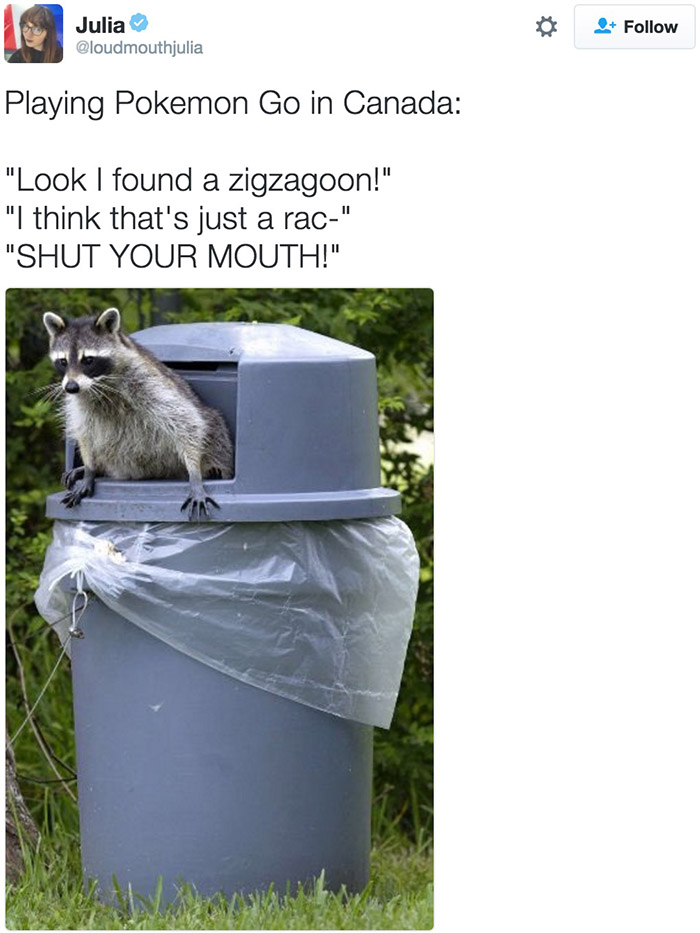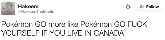 “在加拿大,Pokemon Go更确切的说应该叫做Pokemon GO FUCK YOURSELF.”