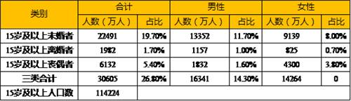 再来看看15岁以上单身人士(未婚、离异、丧偶)的数量,2014年有3亿人,男性为1.6亿,女性为1.4亿,单身男性多出2000万,他们是约炮市场的主力军。此外,传统的价值观也导致男性在约炮市场中更为主动。以男性15%的成功约炮率计算,那么这市场每年大概在4368亿元。加上部分非单身人士的约炮需求,那么这个市场会更大。