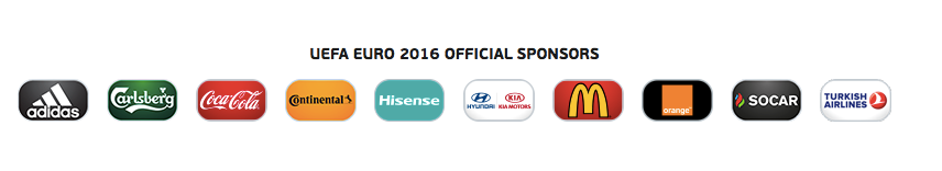众所周知,本次欧洲杯的十个顶级赞助商分别是阿迪达斯、嘉士伯啤酒、可口可乐、德国马牌轮胎、海信、现代起亚汽车、麦当劳、法国电信公司Orange、阿塞拜疆国家石油公司SOCAR和土耳其航空。得益于本届欧洲杯大量的媒体曝光,这些顶级赞助商们也从中受益匪浅。