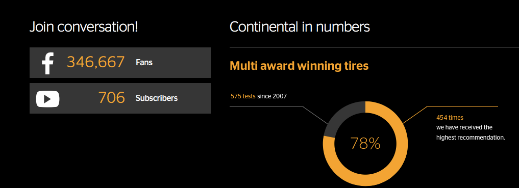 马牌轮胎在Facebook上的粉丝数以及在YouTube上的订阅数