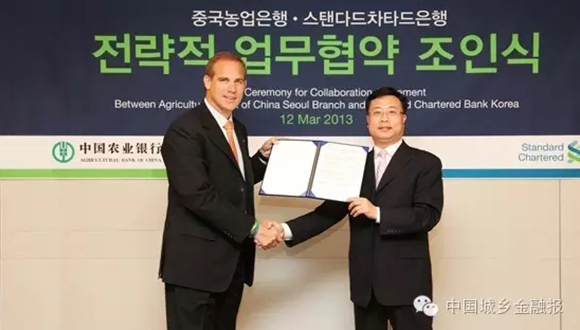 农行首尔分行与渣打银行(韩国)签署金融合作备忘录。