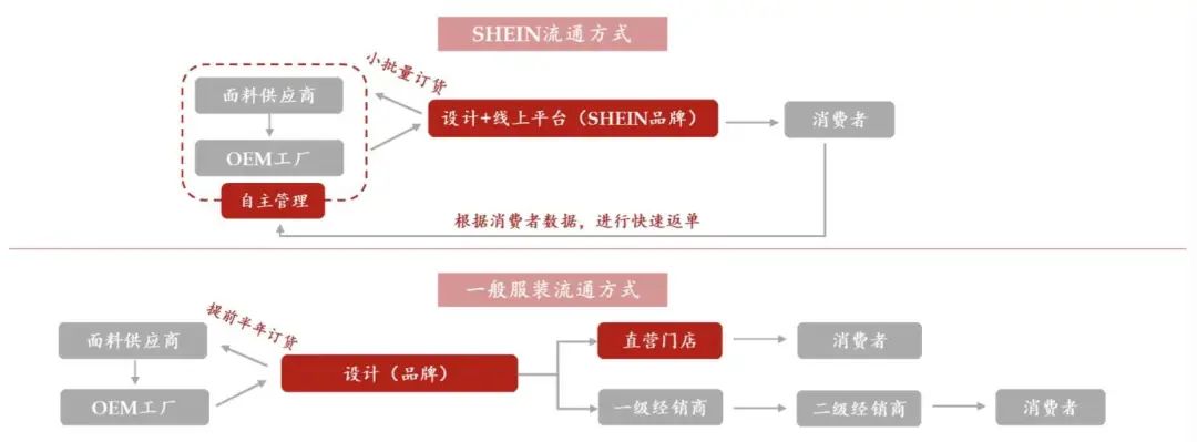 SHEIN 及一般服装企业产品流通方式来源 / 中泰证券研报