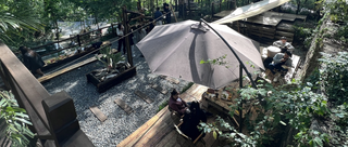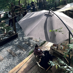 还有温州,露营咖啡馆WAH LAU瓦拉,200多平外加100多平的阳台小院,“把整个森林搬进咖啡馆”,有各种绿植、石子路、帐篷、煤油灯。