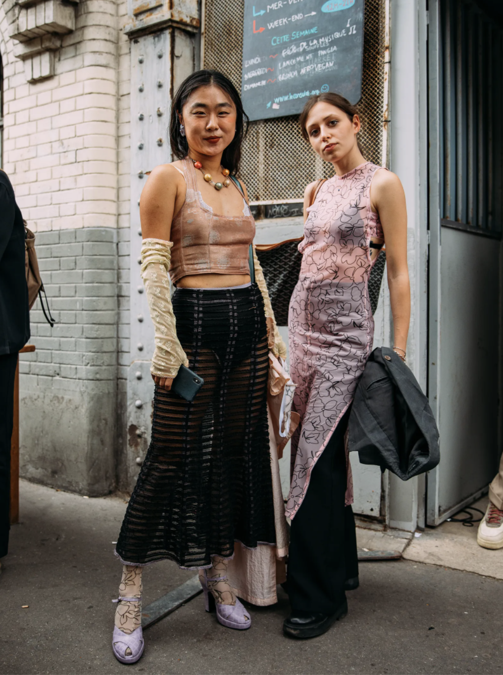东京时装周街拍上的这款粉蓝色针织手套有着温柔可爱的质感,手部露指设计却带有丝丝酷感;绣上花卉刺绣的薄纱手套则带有古典风格,在这个炎热的季节更为适用。