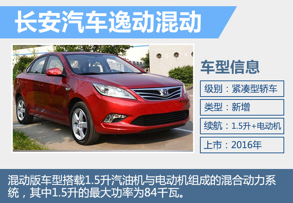 长安逸动混动是在汽油版和纯电动版上市后推出的新新能源车型,在外观上,新车与现款在售其他动力配置车型基本一致。动力方面,混动版车型搭载1.5升汽油机与电动机组成的混合动力系统,其中1.5升的最大功率为84千瓦。此外,新车还新增了金属氢化物镍蓄电池与电动机,加上电动机的重量,仅比汽油版顶配型高出35千克。