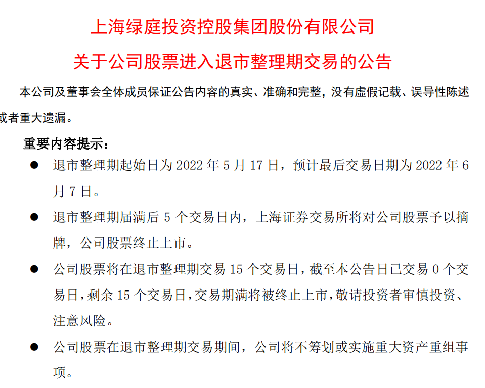 从公司股价看,自2022年4月1日以来,公司股价在阶段下跌的过程中还呈现2个高点。4月25日公司收到关于拟终止股票上市的事先告知书,4月26日开市起停牌,5月9日公司发布进入退市整理期交易的公告。