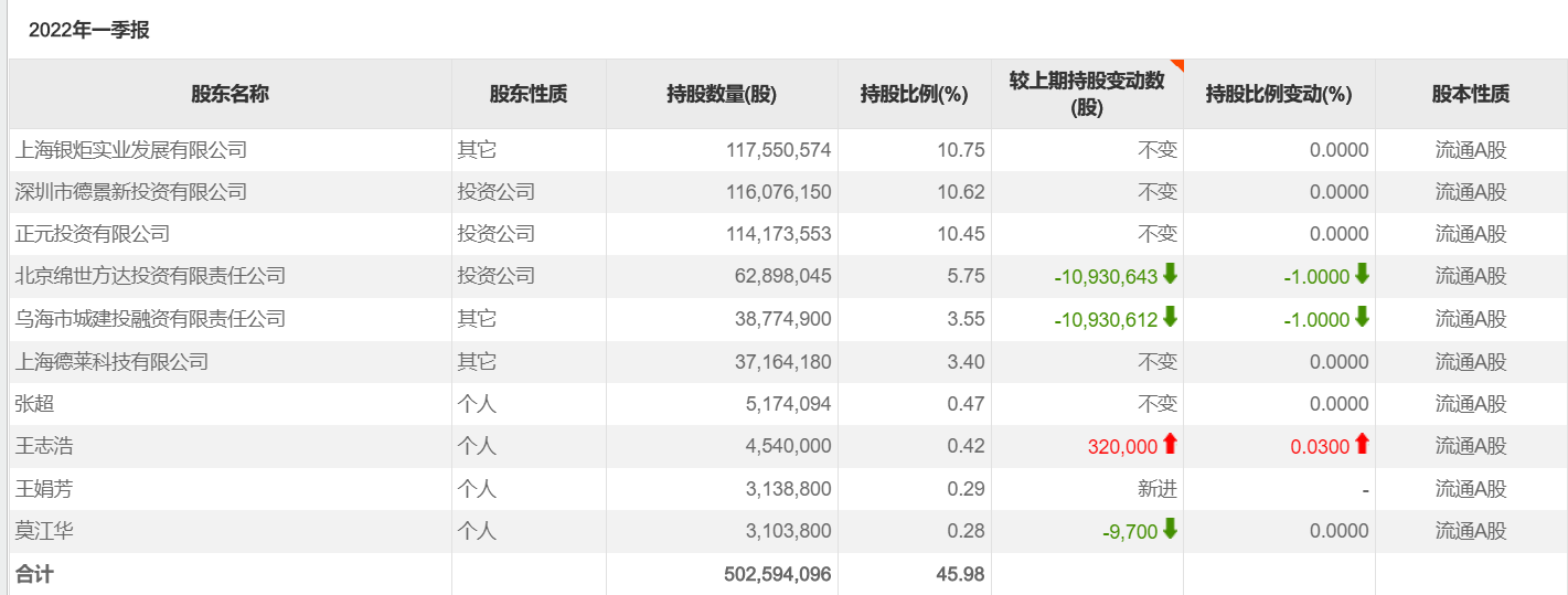 *ST绿庭截至3月31日当前股东户数达5.4万户,前10大股东中招商证券、东方证券位列其中,还有4名自然人位列其中。