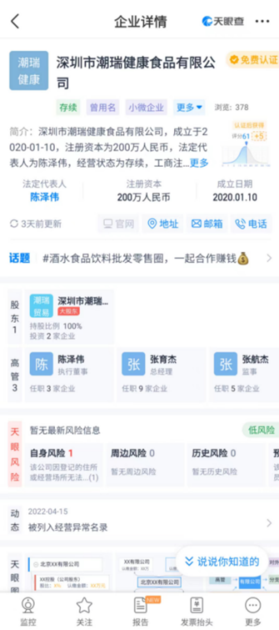 张育杰是广东泰升药业股东,持股10%,并在泰升药业集团旗下多个公司任监事,同时张育杰也是深圳潮瑞健康食品有限公司总经理,而该公司法定代表人为陈泽伟,陈泽伟曾在深圳十二村健康科技有限公司、深圳驰记新媒体有限公司任监事。