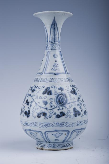 这件青花缠枝瓜果纹玉壶春瓶是青花中的佼佼者。