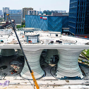 据了解,这座造型奇特的钢架结构建筑是“杭州未来停车楼蜻蜓公园”项目的地面部分,该项目总建筑面积近2.5万平方米,分为地下4层和地上2层,是一个共拥有500个社会车位的智能停车场。建成后的该停车楼将采用无人值守的智能化机器人停车方式,由机器人在地下各层将车搬运至停车位,将会是目前国内规模最大的潜入式AGV机器人停车项目,而屋顶层则将打造成一个具有娱乐设施和屋顶花园的现代空间。