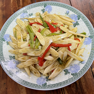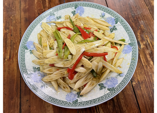 采收回来的藕尖至少要清洗三遍才能洗掉外面的泥浆,清洗干净的藕尖晶莹剔透,如白玉般光洁。新鲜的藕尖咬一口清脆爽口,还带着一股香甜,这就是大自然的绝美馈赠。藕尖的烹饪其实很简单,把油烧热,将鲜嫩的藕尖倒进锅里,再加上醋、红绿辣椒等,煸炒两分钟就可以起锅了。