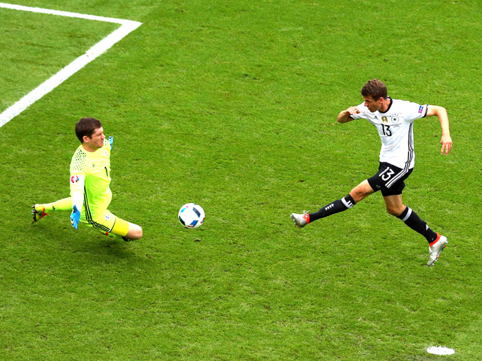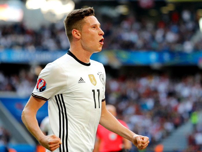 7. 德拉克斯勒(德国,沃尔夫斯堡) “弓开如秋月行天,箭去似流星落地”,这是央视解说员贺炜对德拉克斯勒那脚写意射门的高度评价。对阵斯洛伐克的1/8决赛,德拉克斯勒贡献一传一射,此外,狼堡小将在当晚的8次一对一突破全部成功,这也创造了本届欧洲杯的新高。