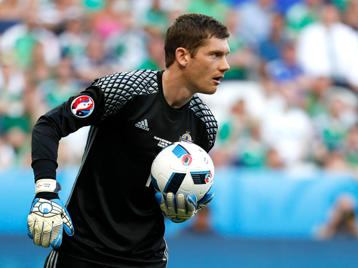 10. 麦克格文(北爱尔兰,汉密尔顿) 面对德国的8次成功扑救,让北爱尔兰门将麦克格文再创欧洲杯新高,他的高接低挡让球队在那场比赛仅丢1球,这也助北爱尔兰在争夺小组第三时占据了净胜球优势。而3场小组赛的16次扑救,也让31岁的他当选为小组赛阶段的最佳门将。