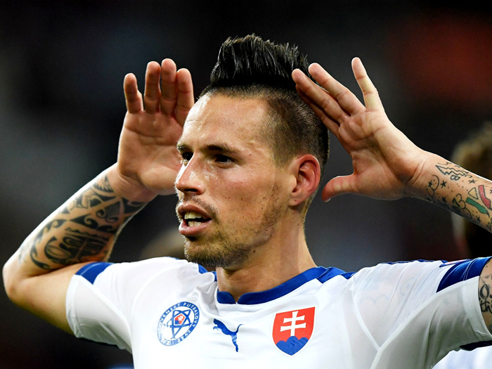 5. 哈姆希克(斯洛伐克,那不勒斯) 一次精准助攻,一脚惊天抽射,再加上霸气十足的庆祝动作,这便是哈姆希克在小组赛次轮留给世界的印象。当然,这已经不是斯洛伐克队长第一次成为国家英雄了,预选赛中他就凭借一个梅开二度在末轮助球队晋级正赛;而6年前的南非世界杯,作为史上最年轻队长的他更是率球队力压意大利小组出线。