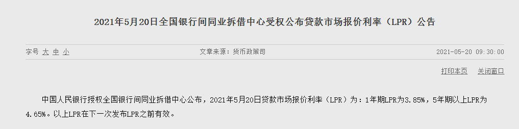 5月20日,中国人民银行授权全国银行间同业拆借中心公布,2022年5月20日贷款市场报价利率(LPR)为:1年期LPR为3.7%,5年期以上LPR为4.45%。