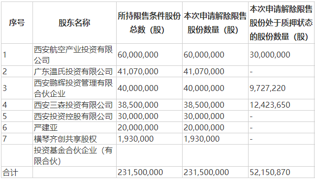 根据公告,5月23日三角防务有2.32亿股首发限售股上市流通,占公司总股本的46.71%,约合市值87.65亿元。涉及股东共7位。