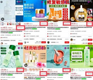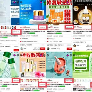 以电商平台为例,将“修复敏感肌”“强化修护”“解救敏感红血丝”“敏感肌可用”“敏感肌安心用”作为宣传标语的产品不在少数。这些产品价格参差不齐,从十几元到一百多元,应有尽有,且许多产品目前的销量都已超过10w+。