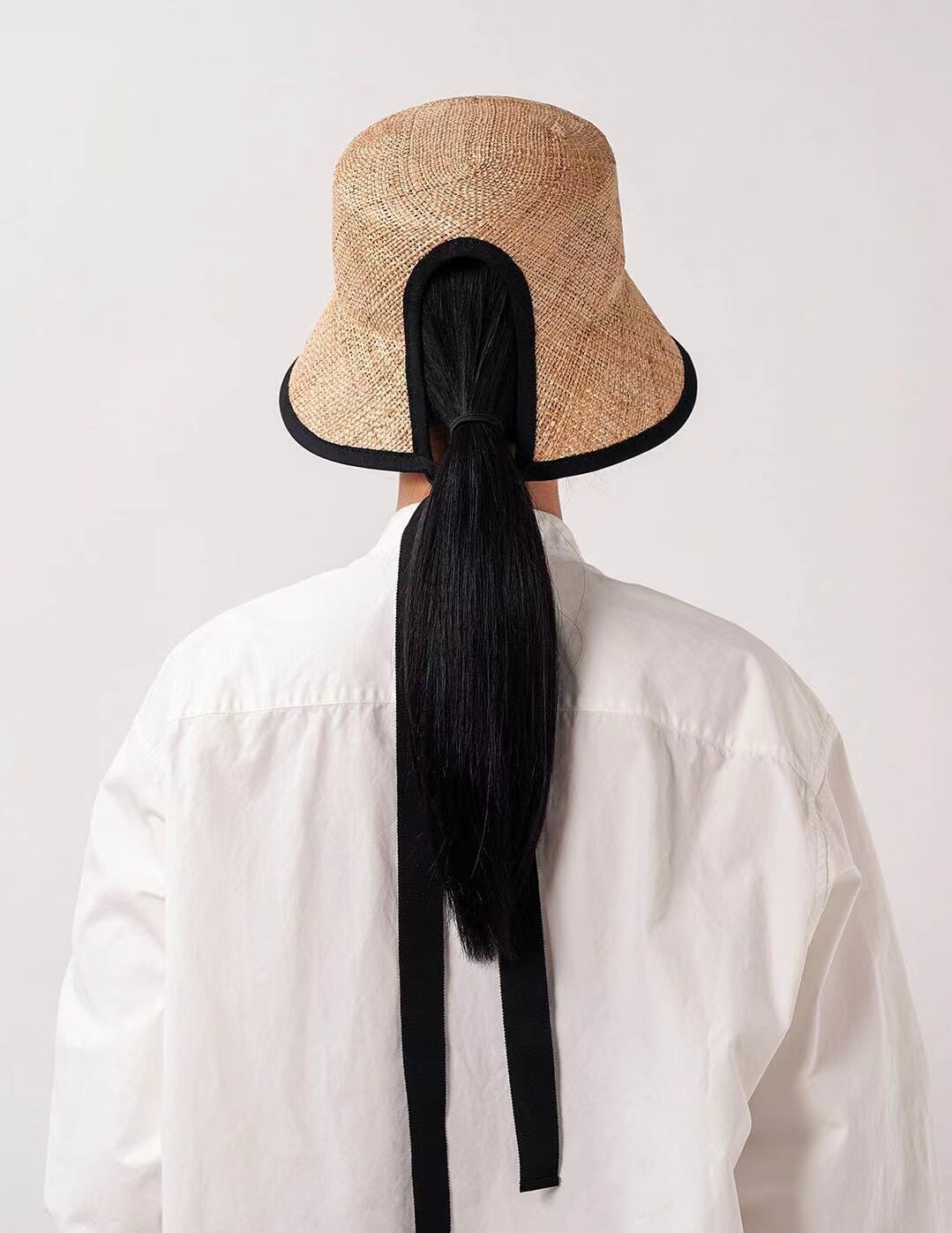 “KURA”则具有良好的遮阳效果,帽檐下垂,编织排布更加紧密,可以有效的防止阳光的透入。而帽子后面贴心的为马尾辫留出外露的掏空设计,可根据发型的不同,自主调节。