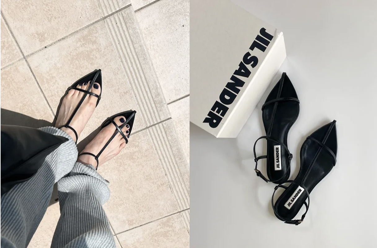 女士尖头鞋本就是知性干练的代名词,将职场女性雷厉风行,利落的一面展现的淋漓尽致。但中规中矩的尖头高跟在日常生活中又显得过于正统和刻板,而Jil Sander这款极具设计感的鞋款似乎给出了改善方案,它的魅力在于场合的百搭,搭配一条简单的休闲西装裤或牛仔可以展现更完美的身材比例和女性迷人魅力。