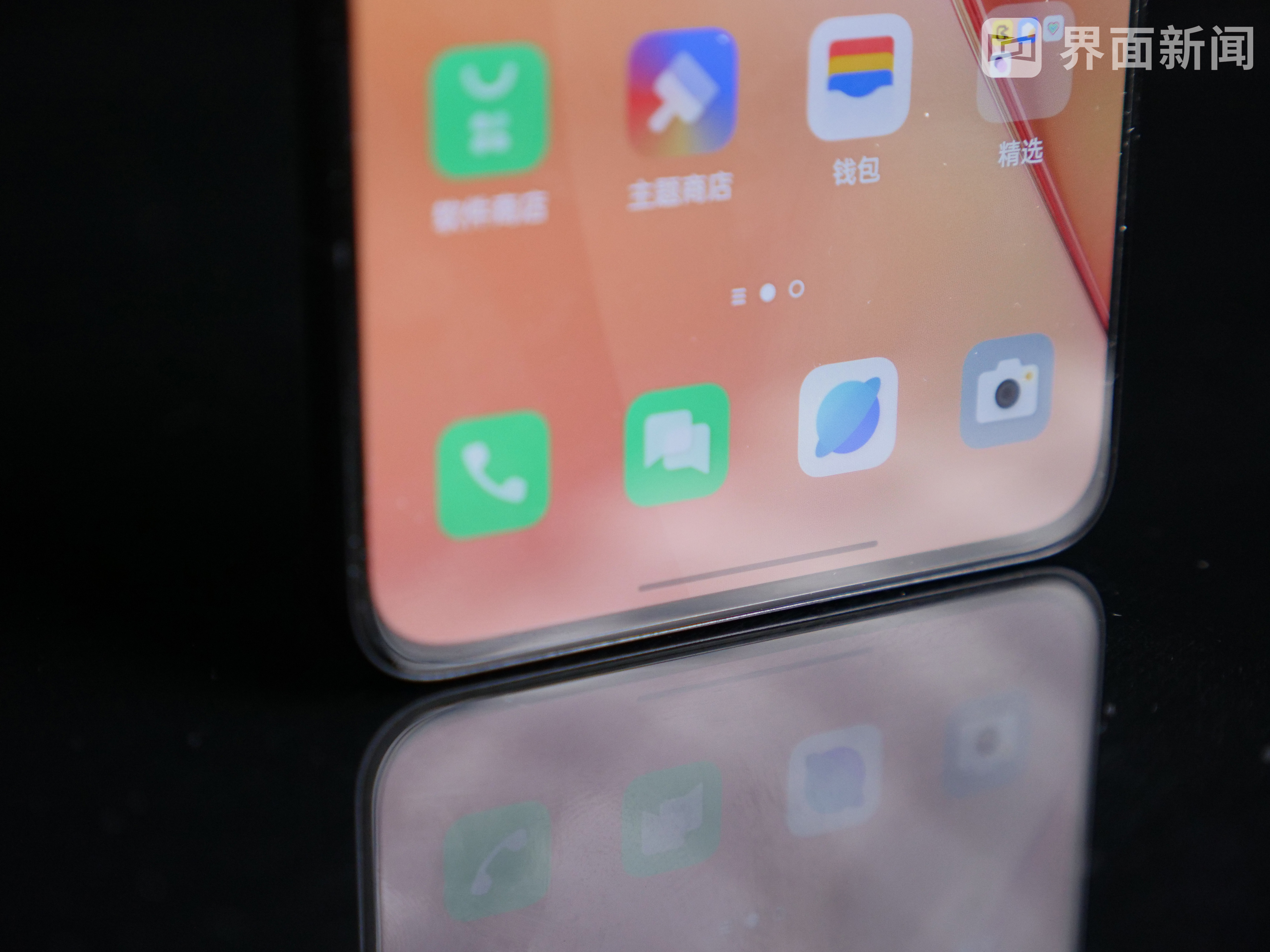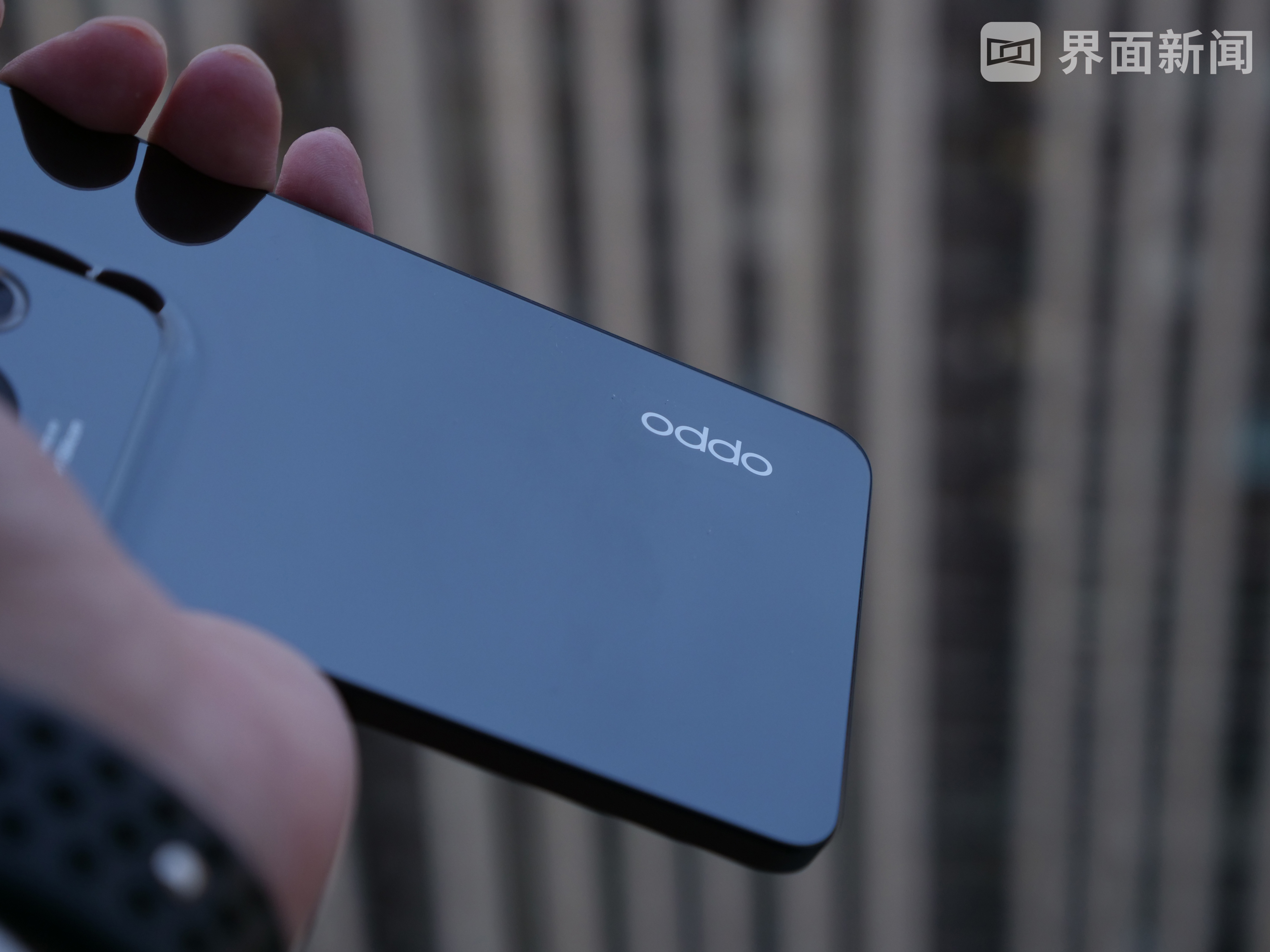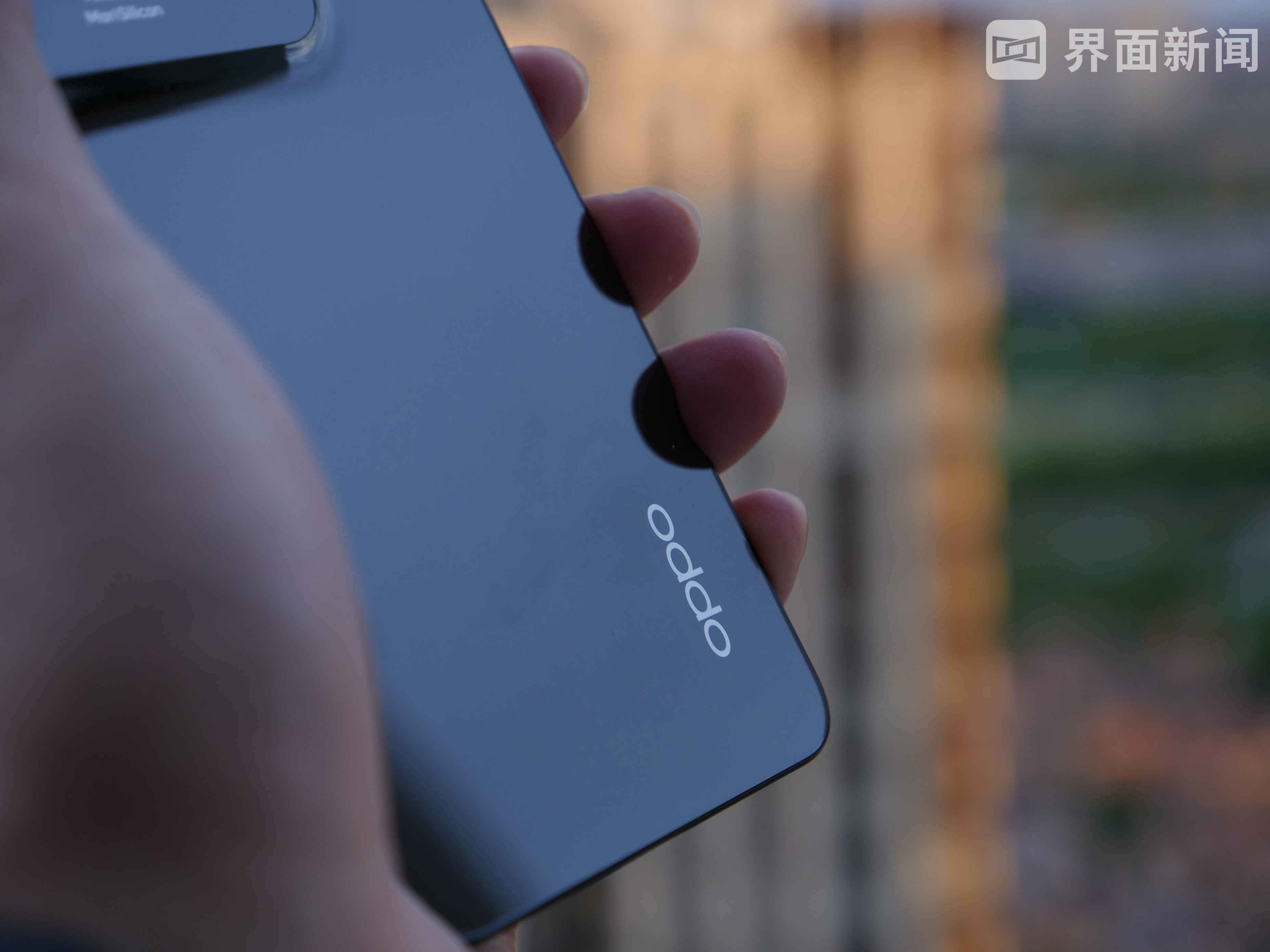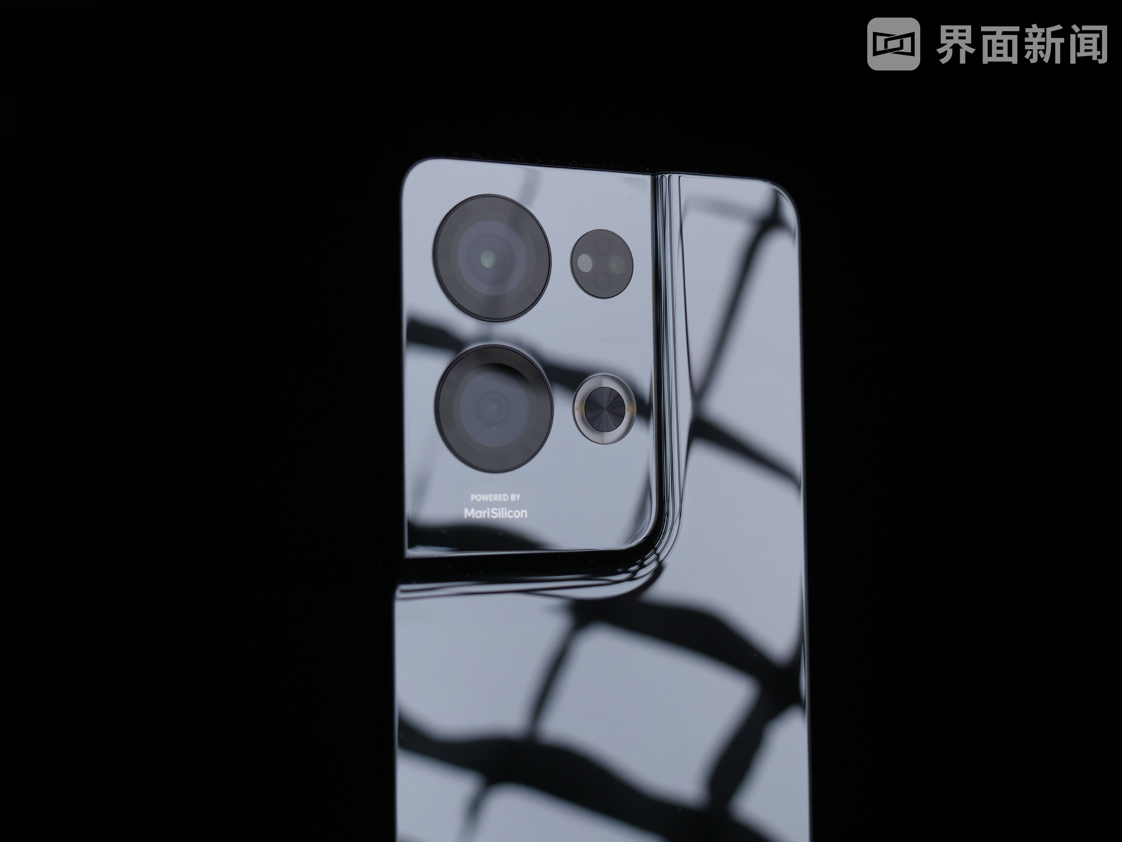 而从整体造型来看,Reno8 Pro+采用了直角边框设计,中框为航空金属材质。我手上的新机为“暗涌黑”配色,镜面反射效果明显。Reno8 Pro+的下边框仅为2.37mm,薄约7.34mm,重约183g,握持感还是相当轻盈的。
