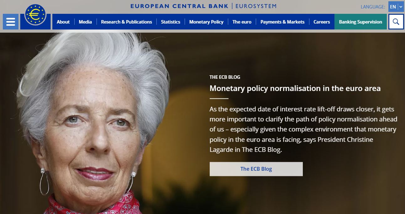 5月23日,欧洲央行行长拉加德在欧央行官网上发表文章称,该行将致力于恢复欧元区货币政策正常化。