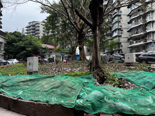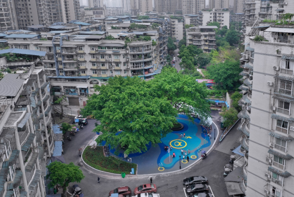 走在名人丽都小区的新建广场上,汤文芳带着记者四处逛了逛,广场中央两株粗壮的黄桷树得以保留,用花岗石围住,种上绿草。