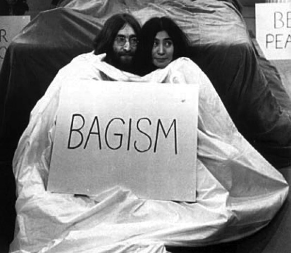姑且不论小野洋子在艺术界的地位与市场号召力,她的特立独行就给我们留下不少谈资,例如那个不存在于字典里的单词——Bagism。