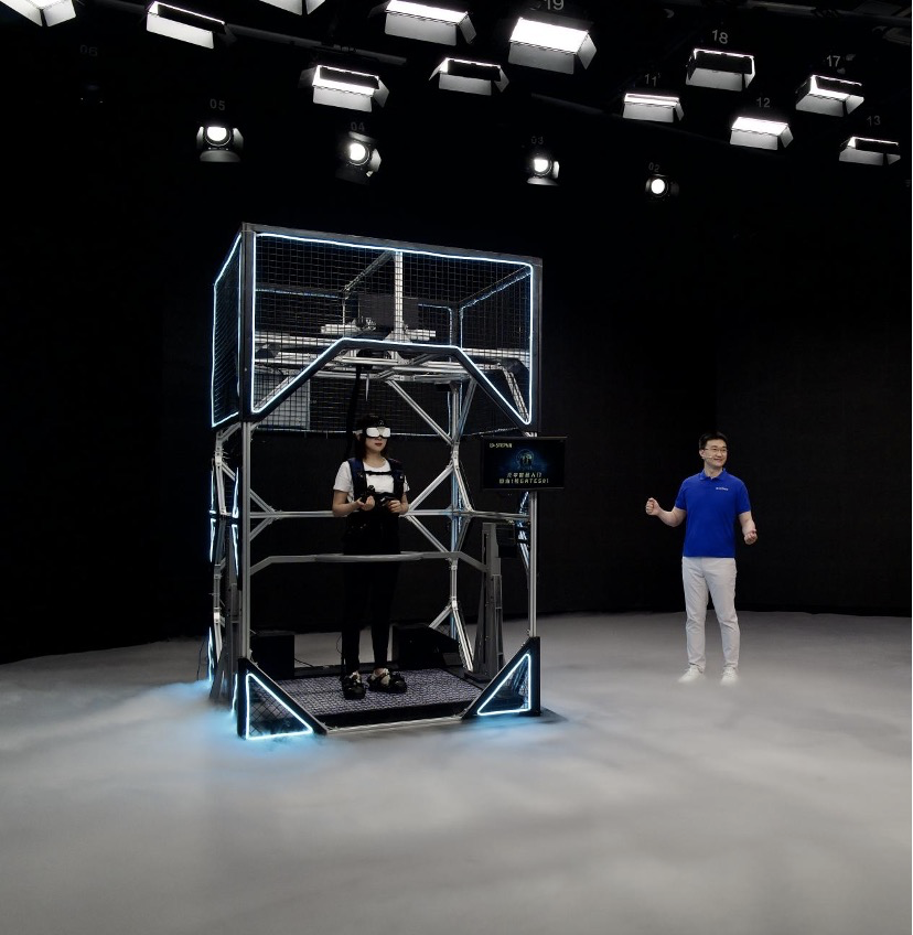 2022年5月26日,作为国内VR领域最早的探索者,STEPVR在北京正式对外发布了全球首款元宇宙登入门产品——国承1号(VR Gates01)。不同于以往虚拟现实设备,该产品实现了视觉、听觉、触觉、嗅觉及前庭平衡感觉“五感”一体,“高沉浸式环境”使身体完全对接到虚拟场景之中。而这一切都发生在一个约3平米的小空间内,《头号玩家》里无限移动的虚拟世界迈向现实。