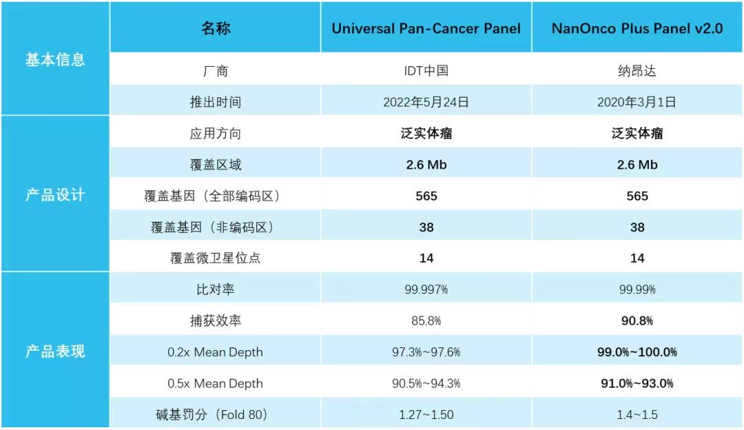 5月25日下午,国产测序公司纳昂达在其公众号发布《涉嫌抄袭?IDT实体瘤Panel新品与纳昂达2020年泛癌Panel v2.0版高度相似遭质疑!》一文,质疑IDT公司(简称“埃德特”)在2022年5月发布的泛癌肿瘤检测产品(Universal Pan-Cancer Panel)与纳昂达2020年3月推出的泛癌肿瘤检测产品(NanOnco Plus Panel v2.0,以下简称2.0产品)存在“各种技术参数撞衫”。