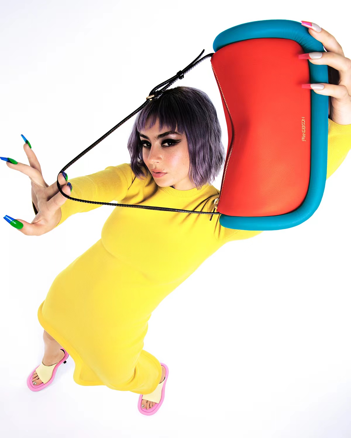JW Anderson 2022早秋系列Bumper手袋的宣传图于近期释出,并官宣将于6月正式发布。Bumper手袋新品系列在充满艳丽色彩的氛围以及英国歌手Charli XCX有趣搞怪的演绎下出场,无论是颜色组合还是在材质的使用上,均用一种扭曲,大胆极端的设计风格展开全系列单品,一波玩趣十足的操作着实让人期待。