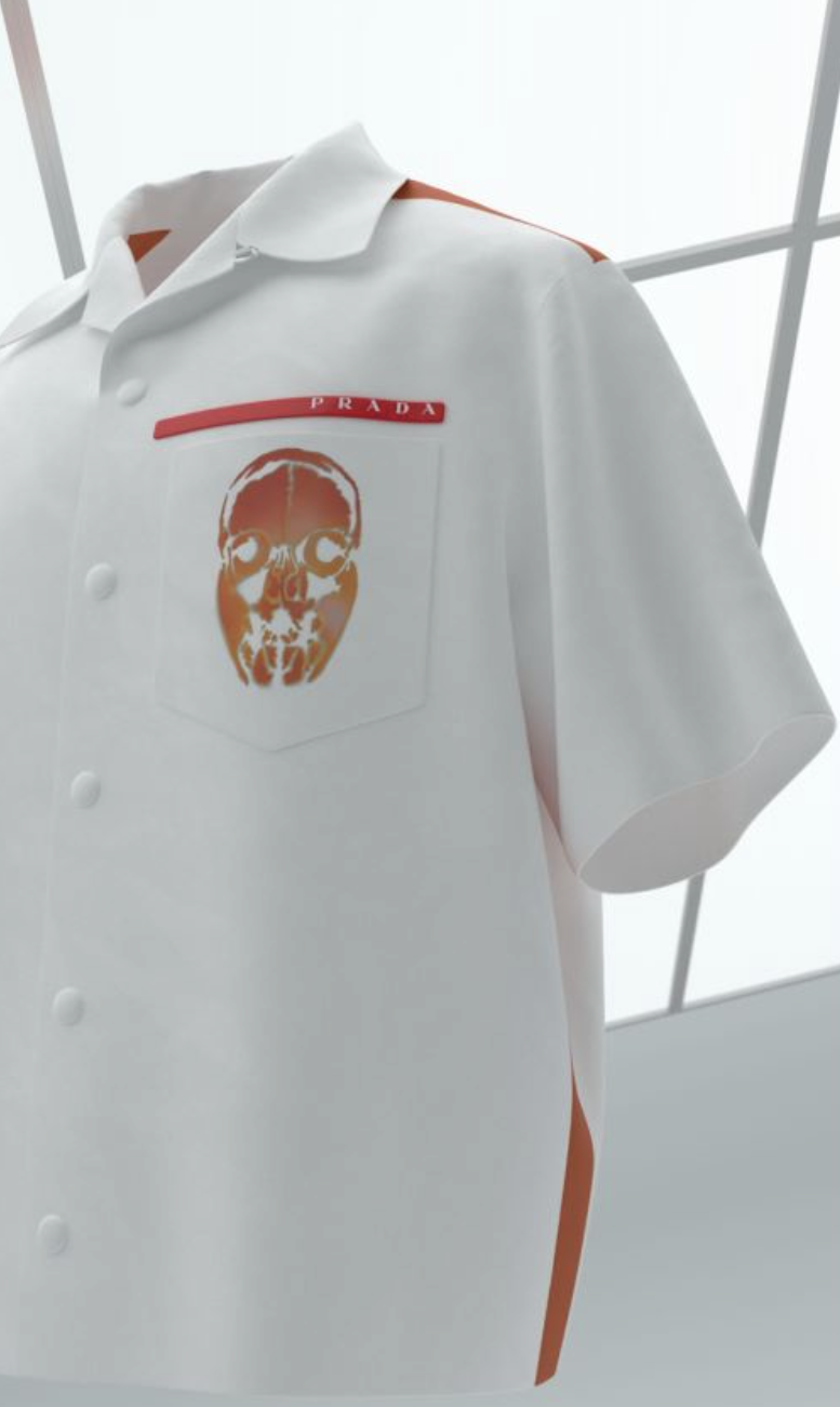 全新Timecapsule将发布由Prada与艺术家Cassius Hirst(Damien Hirst之子)合作设计的限定版衬衫。衬衫呈现Cassius Hirst独有的面具和脑部扫描设计。此限定单品由最具特色的科技织物制成,属于高性能的Linea Rossa系列,并有黑白配色可供选择。而NFT包含产品发布序列号和每件实体商品编号,便于确切对应身份。Prada Timecapsul本次新品将发售100件。