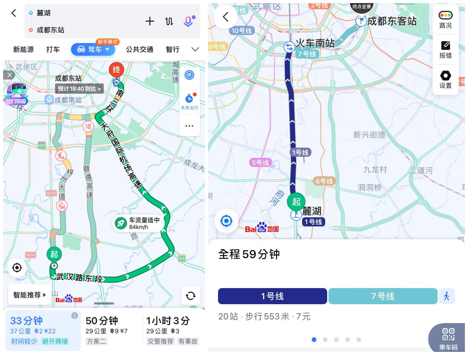 不过,由于成都南站为三等站,每日高铁班次设置较少,因此成都东站才是高铁出行的“主战场”,从距离来看对于居住在城南,尤其天府新区的人并不友好。