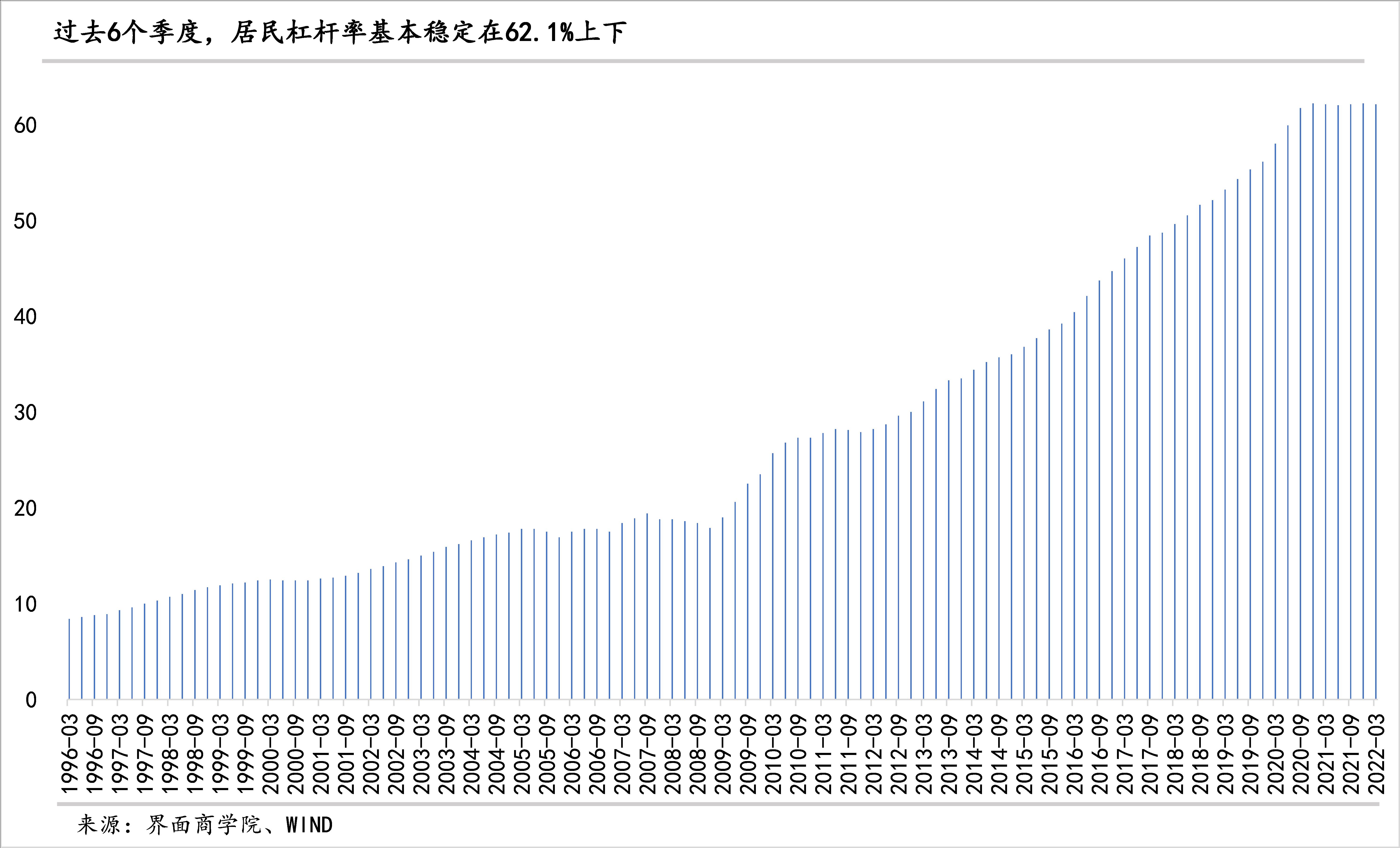 该指标自2020年下半年以来保持稳定,基本围绕62.1%微幅波动,5月11日,NIFD发布的2022年一季度居民杠杆率为62.1%,持平于上年同期。