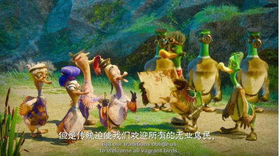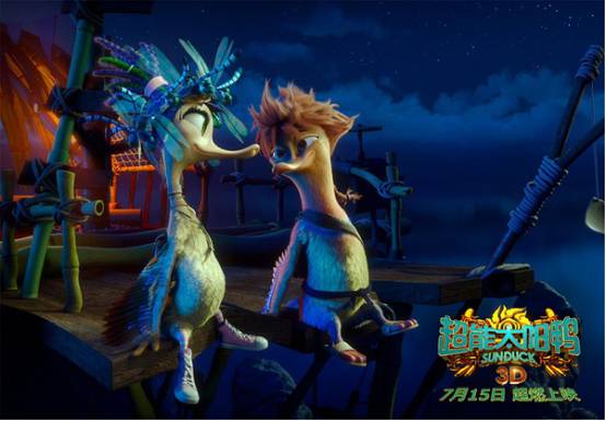 《超能太阳鸭》是这个暑期档目前最想讲好合家欢故事的动画电影。它是一部合拍片,是中国、美国、俄罗斯三国合作的产物,因此我们可以在片中看到它把三国元素都打成了包:太阳岛的中式建筑、中式画风、唐装、高跷、箭靶等元素,绿头鸭们的西式装备,飞行镜等元素,反派女巫所在的机械城堡充满了蒸汽朋克的元素以及哥特的浓艳阴郁的色调,女巫本人则展现出俄罗斯风情。电影把这些元素打成了包,最终呈现的视觉效果不算差,有些画面看起来颇有美感,场景也很聪明地衬托人物,有对比有反差。