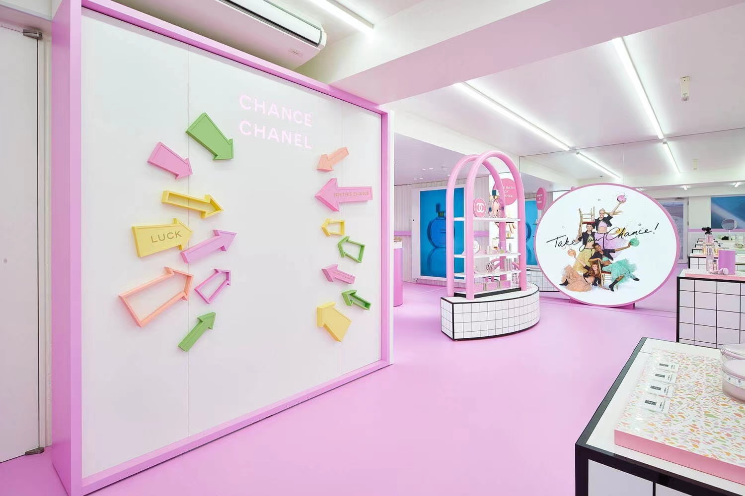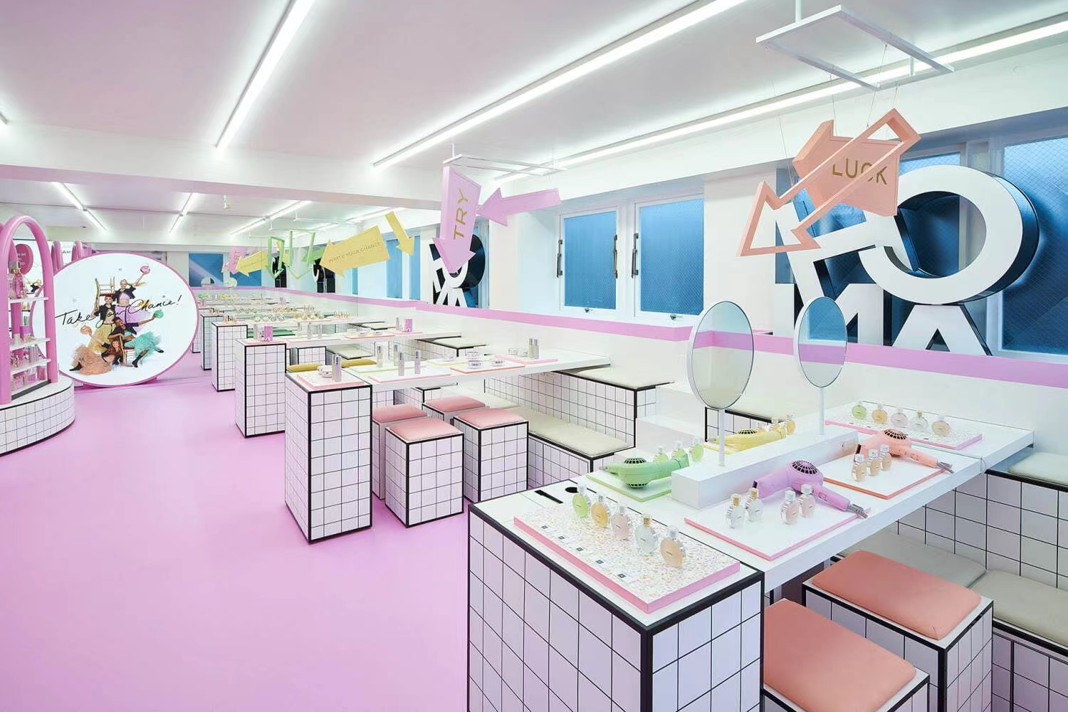 表参道通Chanel美容之家占地约150平方米,设计上浸入白色的立面,上面覆盖着缝纫图案线和各种香奈儿品牌名称和短语。旁边是一个可移动的楼梯,带有别致的粉红色遮阳篷。一楼提供身临其境的品牌体验服务,包括香奈儿全系列化妆品,还提供美容记录,以及香奈儿试妆。二楼则设置了一个弹出式空间Effortless Beauty,由柔和色彩组成,充满活力。