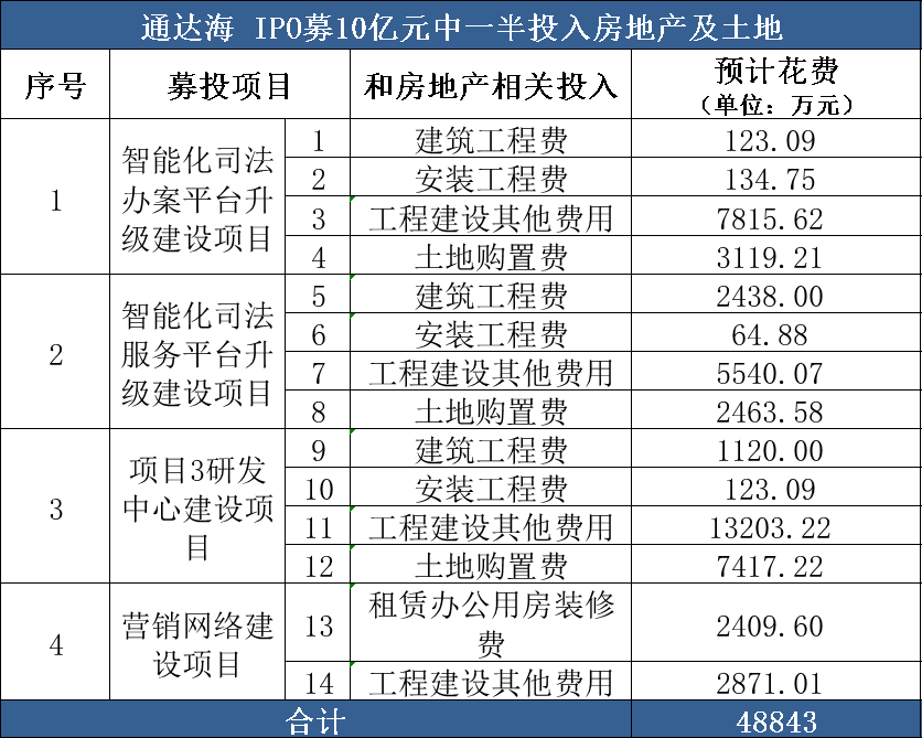 表面上,公司称七成以上资金将用于智能化司法办案、服务平台升级建设项目、1个研发中心建设项目,其余资金将用于营销网络建设项目和用于补充流动资金。而实际上,公司欲将近一半资金用于土地和房屋建设。其中,仅花在南京市鼓楼区的土地购置费就达1.3亿元,在营销网络建设上,仅要花在装修上的钱就超2400万元。