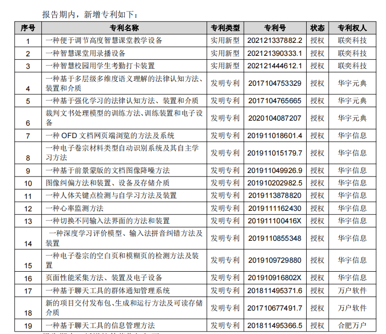 - 而同样是在2020年,华宇软件新增发明专利4项,新增软件著作权216项;