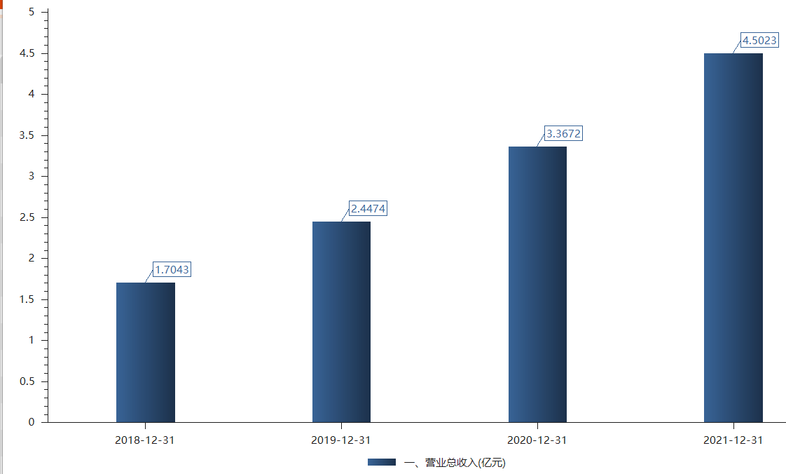 从表面看,公司营收和归母净利保持稳步增长。2018年至2021年,营收从1.7亿元增至4.5亿元,归母净利由0.35亿元增至0.97亿元。