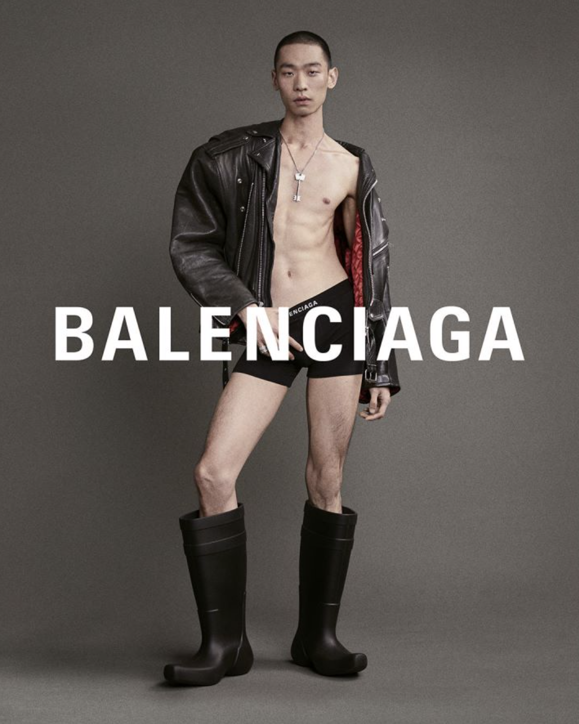 此次广告大片也展示了品牌的多款配饰单品,Balenciaga首饰、Excavator过膝长筒靴、Kensington芭蕾舞平底鞋、Falkon靴款,以及集迷你裙、长裤和靴子为一身、可拆解的五口袋三件套连靴裤。成衣系列成员还包括浴袍大衣、短腰剪裁上衣、做旧风衣、解构风格吊带裙、极紧身或极宽松的成衣单品。低腰裤则搭配双B搭扣腰带,内侧露出Balenciaga底裤的品牌徽标,极具辦识度。