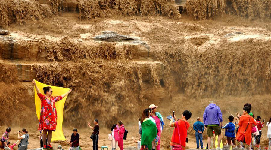 受上游强降雨影响,黄河壶口瀑布水势大涨,主副瀑布连成一片。
