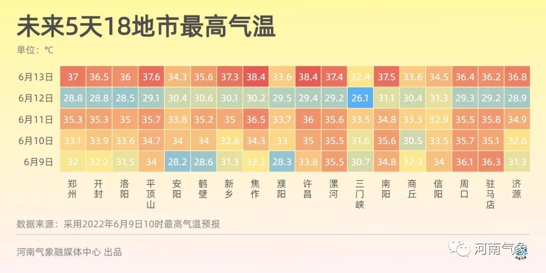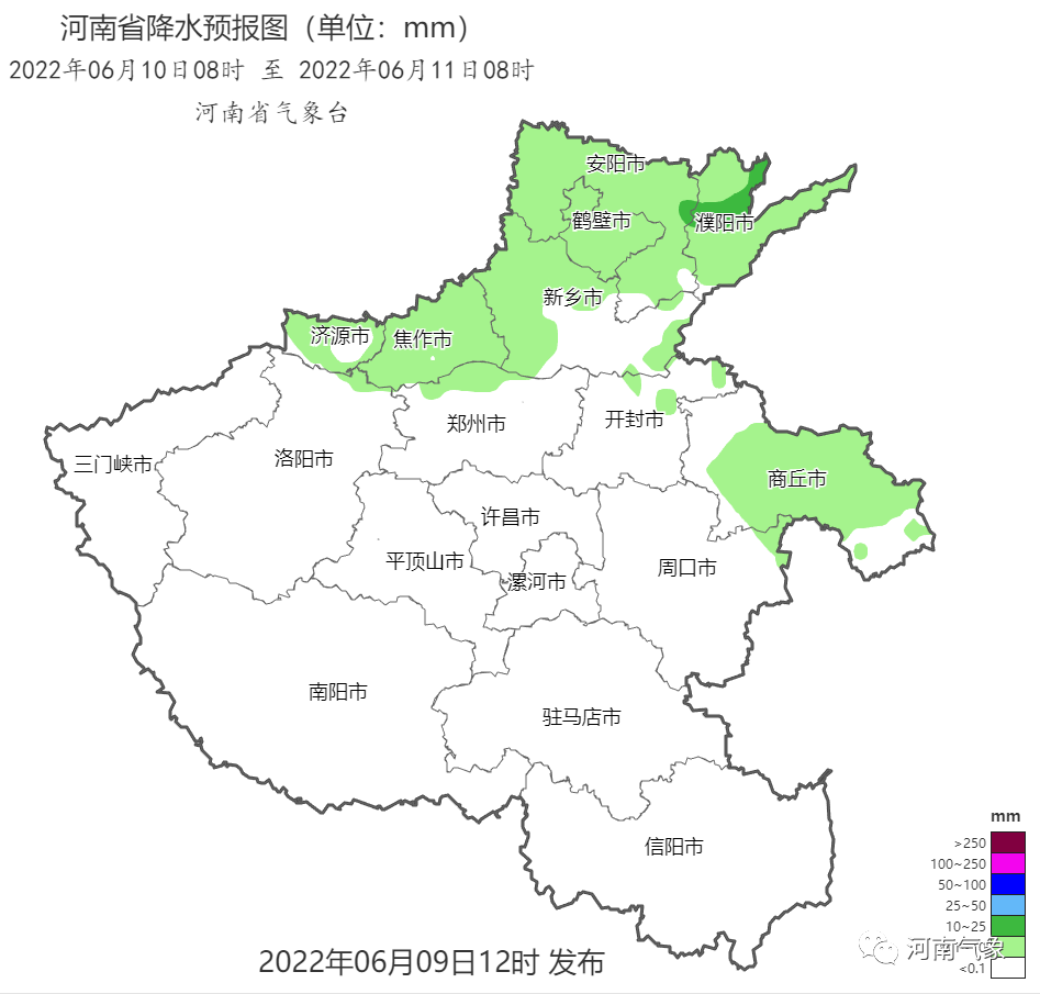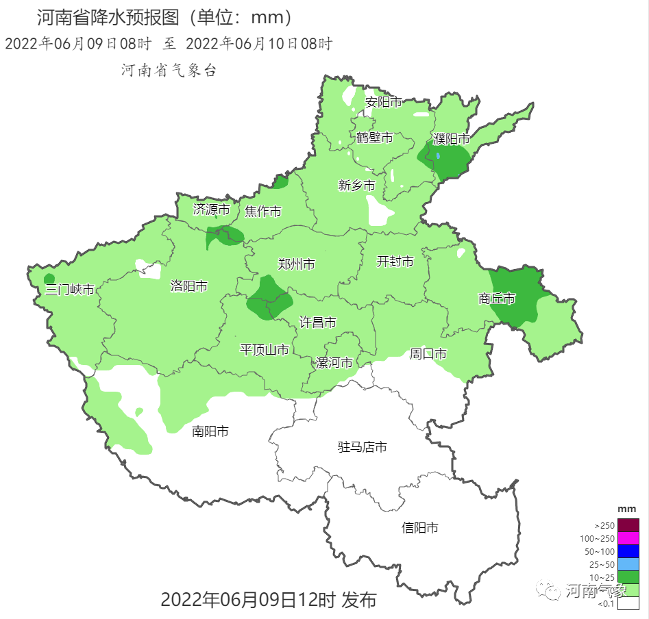 预报来源:河南省气象台2022年6月9日12时预报