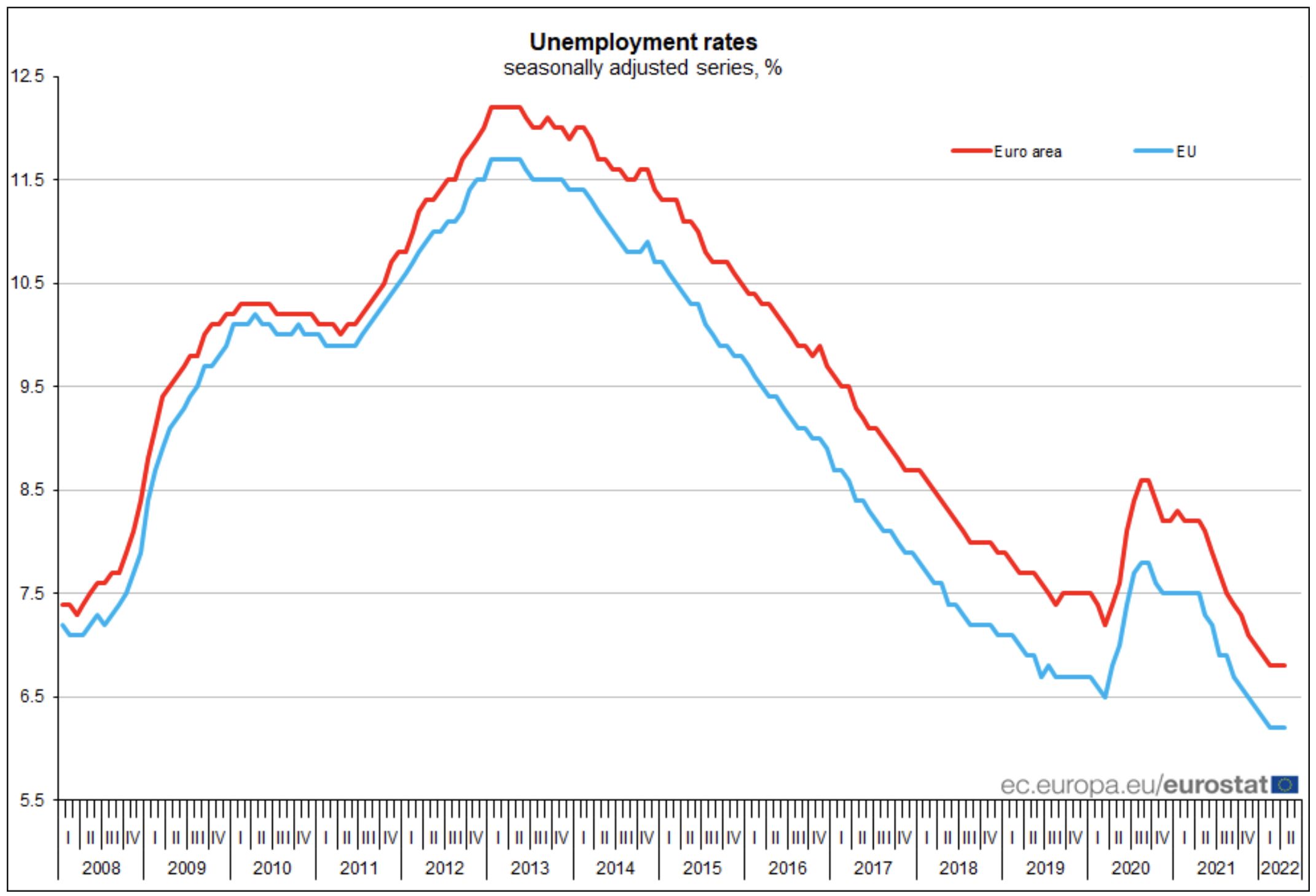 6月8日欧盟统计局公布的最新数据显示,欧元区一季度季调后GDP同比增长5.4%,环比增长0.6%,超出了此前5.1%和0.3%的预期。而该统计局6月1日公布的劳动部门数据也显示,欧元区一季度的就业同比增长2.9%,环比增长0.6%,同样超出此前预期。欧元区和欧盟6.8%和6.2%的失业率同样为10年来最低值。
