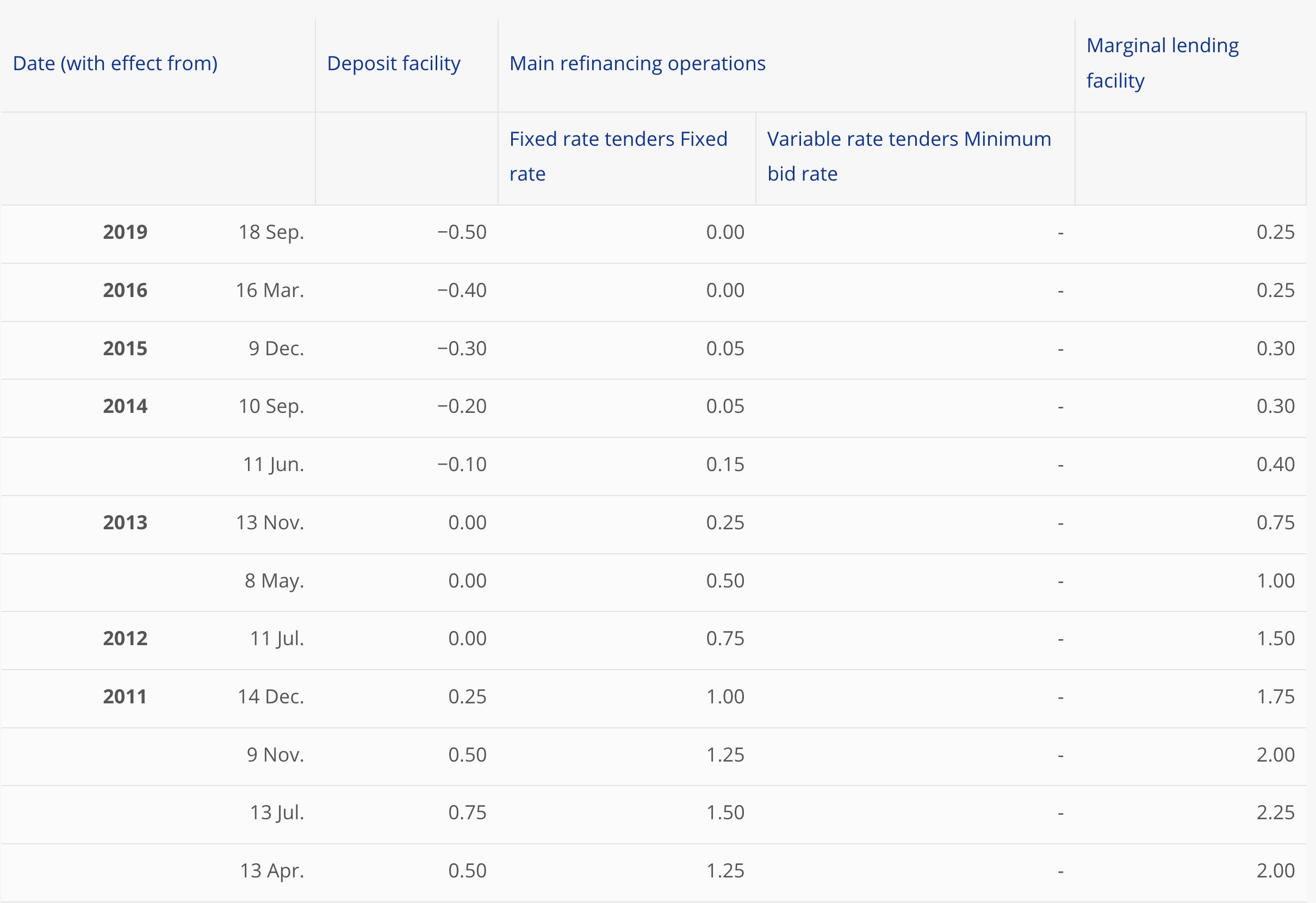 无论欧洲央行在9月选择25个还是50个基点的加息幅度,可以确定的是,欧元区将于9月正式告别已经持续了八年之久的负利率时代,7月21日也将是欧元区11年来的首次加息。2014年6月,欧洲央行首次将存款机制利率从0%下调至-0.1%。