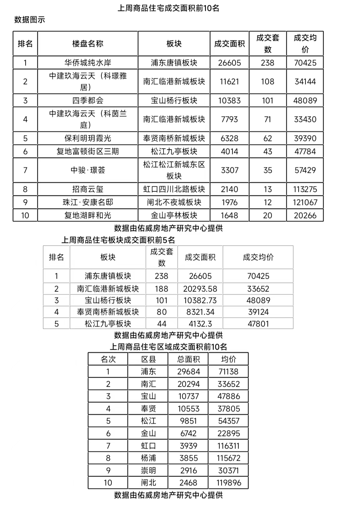 在供应方面,上周上海市商品房新增供应面积为2.48万平方米;上周商品住宅新增供应面积为2.48万平方米;上周获取预售证的商品住宅项目共1个,为奉贤区的保利翰林雅苑2.48万平方米。