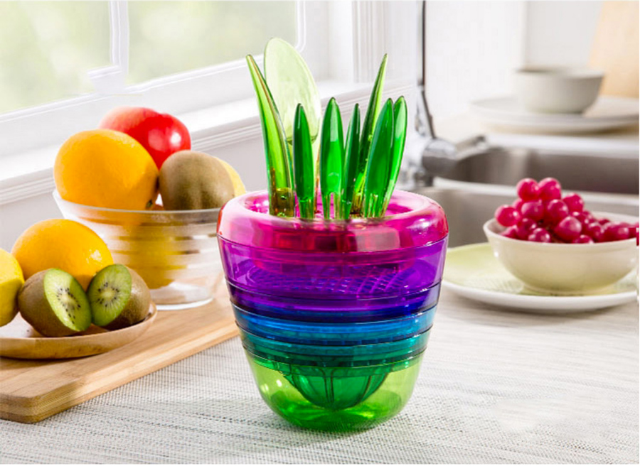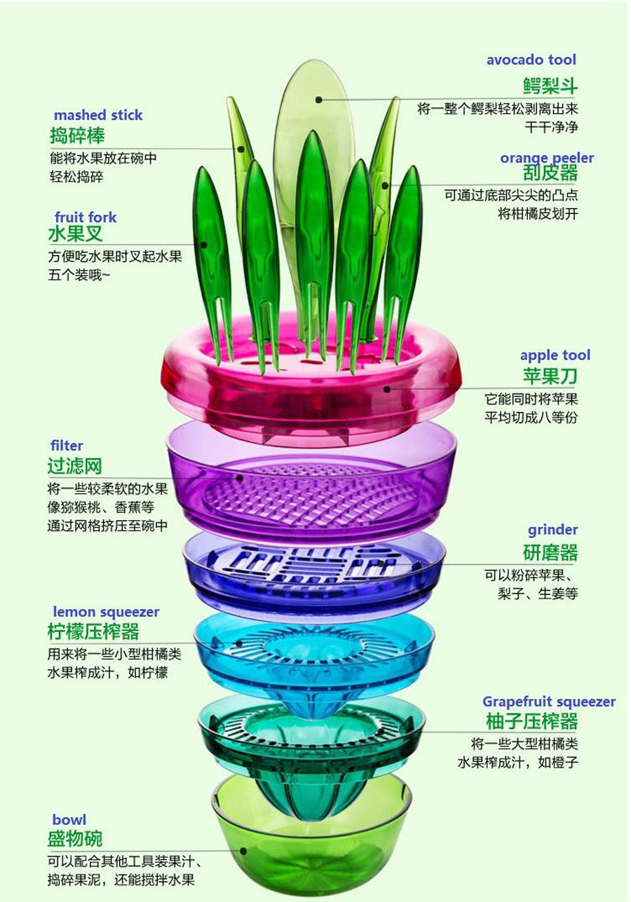 夏天一馋就想吃多多的水果,可是在办公室或者出行的路上又没有充足的条件处理水果。这个Fruit Plant水果处理器拥有十种功能,每一层都是一种工具,长出的“叶子”也有大作用,切、捣碎、榨汁、削皮等等功能都可以实现。揣上几个水果和轻便的Fruit Plant在包里,去到哪儿都可以吃上水果啦。而且它是塑料的,过安检也毫无压力。