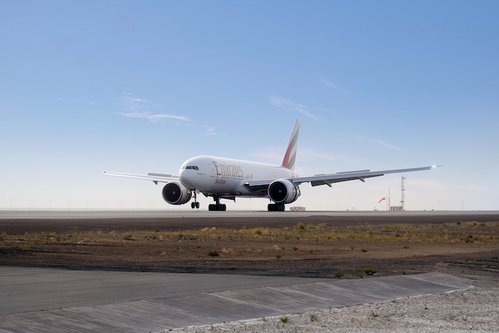 阿联酋航空SkyCargo货运部近日接收了一架全新波音777全货机,令其全货机机队规模扩大至11架。编号为A6-EFT的波音777全货机首先从波音公司位于西雅图的佩恩机场出发,而后飞往香港运载第一批货物,后于翌日早晨抵达迪拜世界中心机场,满载的货物包括电子产品、消费品和一般货物。