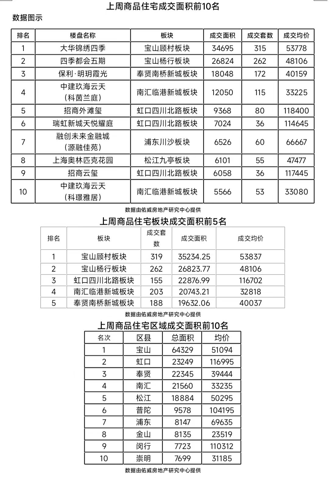 在上周商品住宅成交面积前10名榜单中,成交均价最高的是位于虹口四川北路板块的招商外滩玺,成交均价为118400元/平方米。上周商品住宅板块成交面积前5名分别为宝山区、虹口区、临港区、奉贤区,其中宝山区共成交581套。