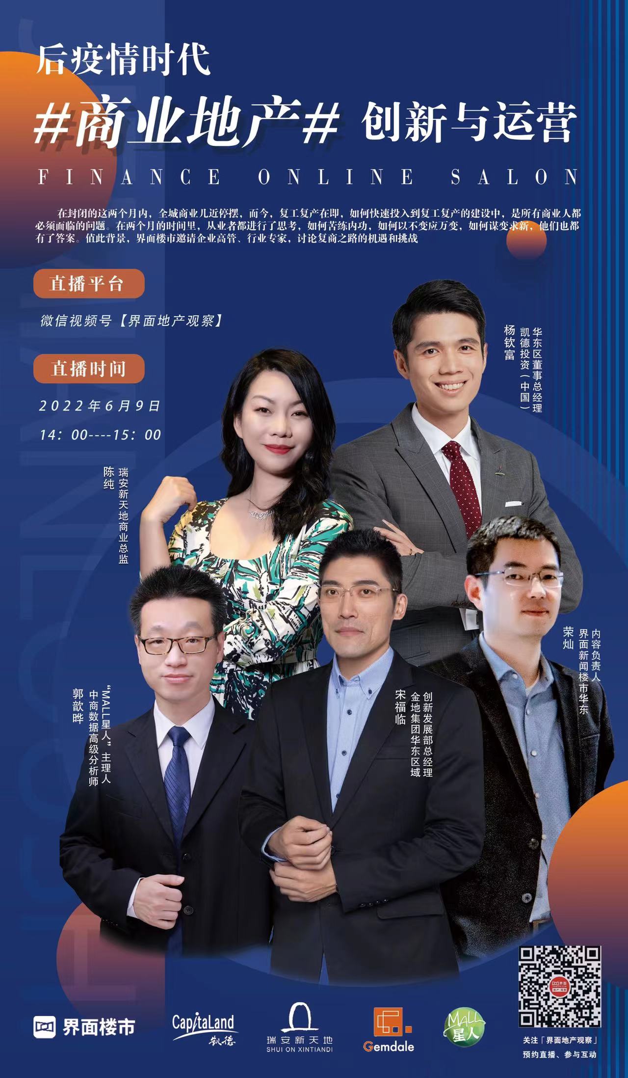界面楼市邀请中商数据高级分析师郭歆晔、凯德投资(中国)华东区董事总经理杨钦富、以及瑞安新天地商业总监陈纯和金地集团华东区域创新发展部总经理宋福临(嘉宾排名不分先后)共商后疫情时代商业发展的可能。