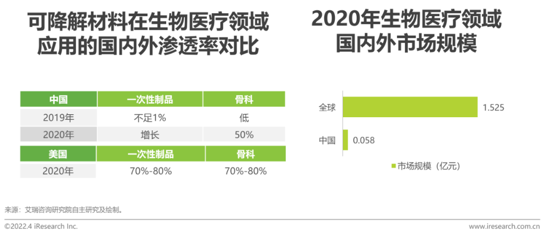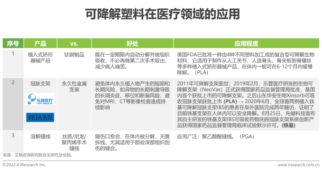 我国可降解塑料在生物医疗领域的市场规模和渗透率都远低于国外,但2019年国家批准乐普医疗、山东华安等企业生产骨钉、支架等, 2020年可降解塑料在骨科的渗透率迅速增长至50%。