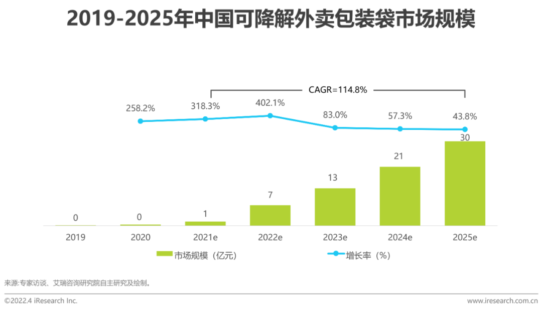 2021年1月,全国范围内的不可降解一次性塑料吸管已被全面取代,随着国家政策的渐进推动和可降解材料行业的不断发展,餐饮外卖行业的包装袋、包装盒采用可降解材料是必然之势。